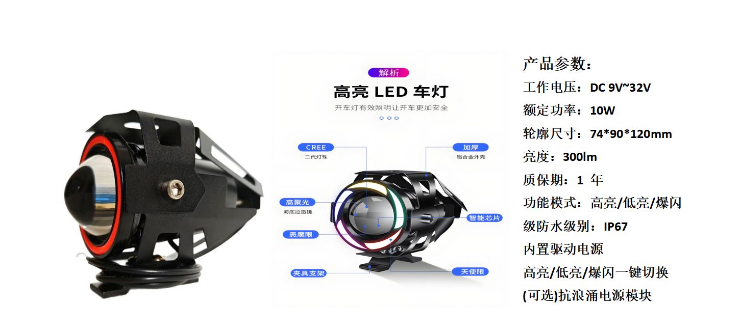 1、摩托车/电动车辅助灯: